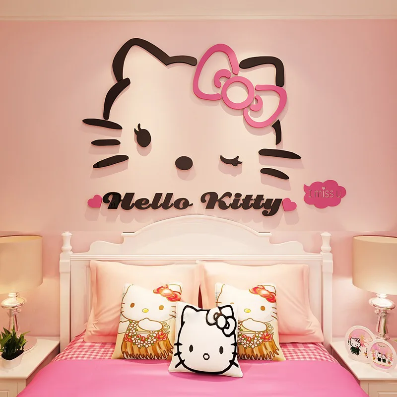 Sanrio Hello Kitty Wall Stickers Room Decor Cartoon Princess Room Background Self-Adhesive 3D Three-Dimensional Sticker Kid Gift $4.03