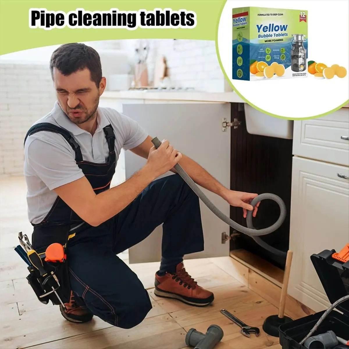 Sink and Drain Cleaner Powerful Pipeline Unclog Tablets Control Powerful Drain Cleaner for Hair Fruit Residues Garbage $9.79