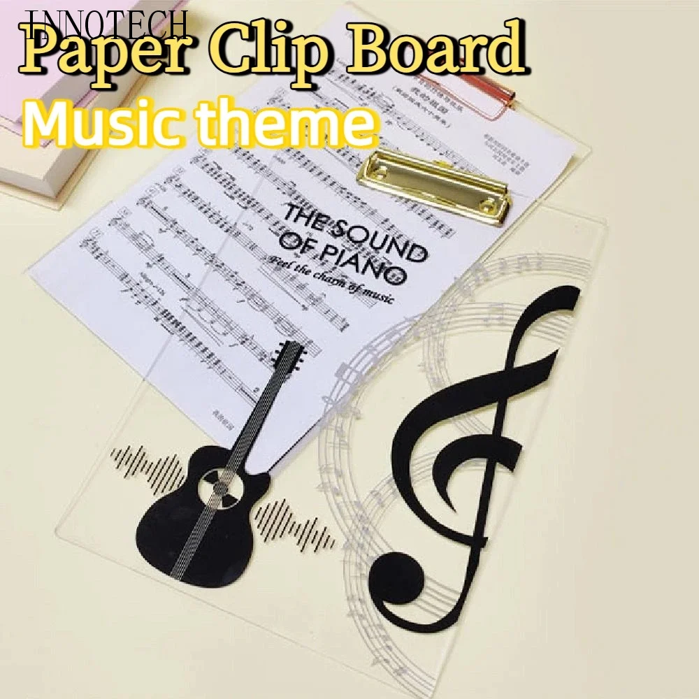 Music Theme Paper Clip Board Transparent Thickened Writing Clipboard Writing Tablet Creative Document Holder Ticket Holder $6.17