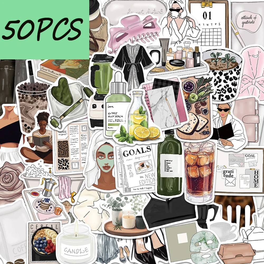50pcs nice and clean daily necessities stickers, decorate phone cases, tablet cases, notebooks, waterproof stickers $2.25