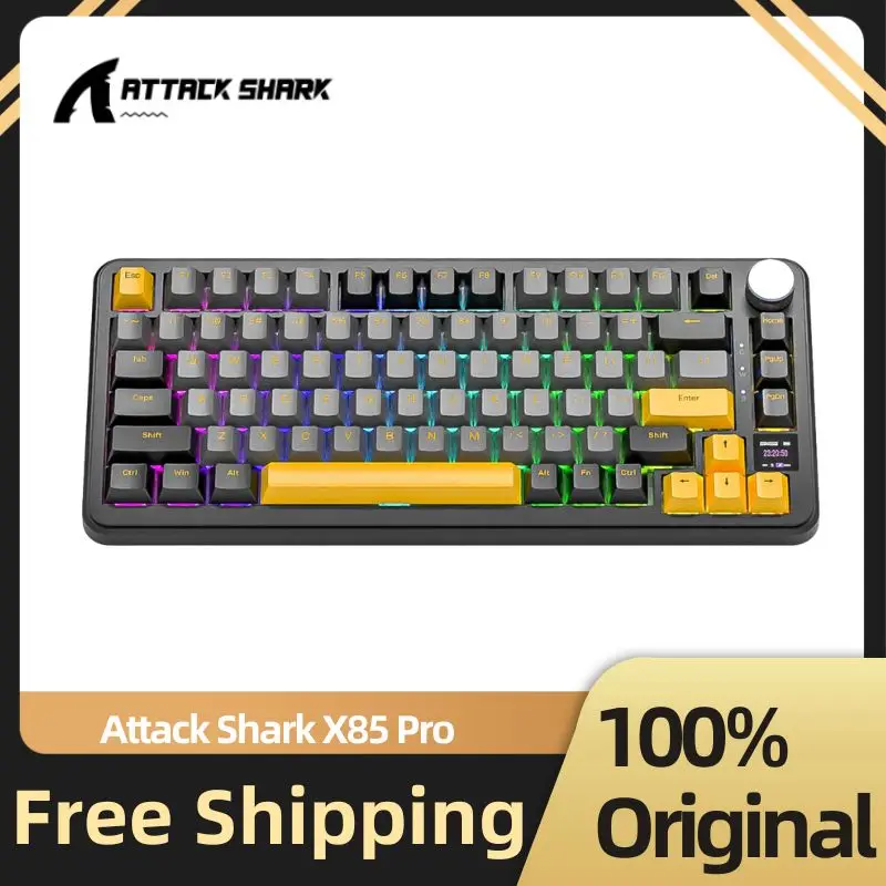 Attack Shark X85 Pro customized three mode mechanical keyboard RGB backlight hot pluggable key smart color screen 75% layout $71.30