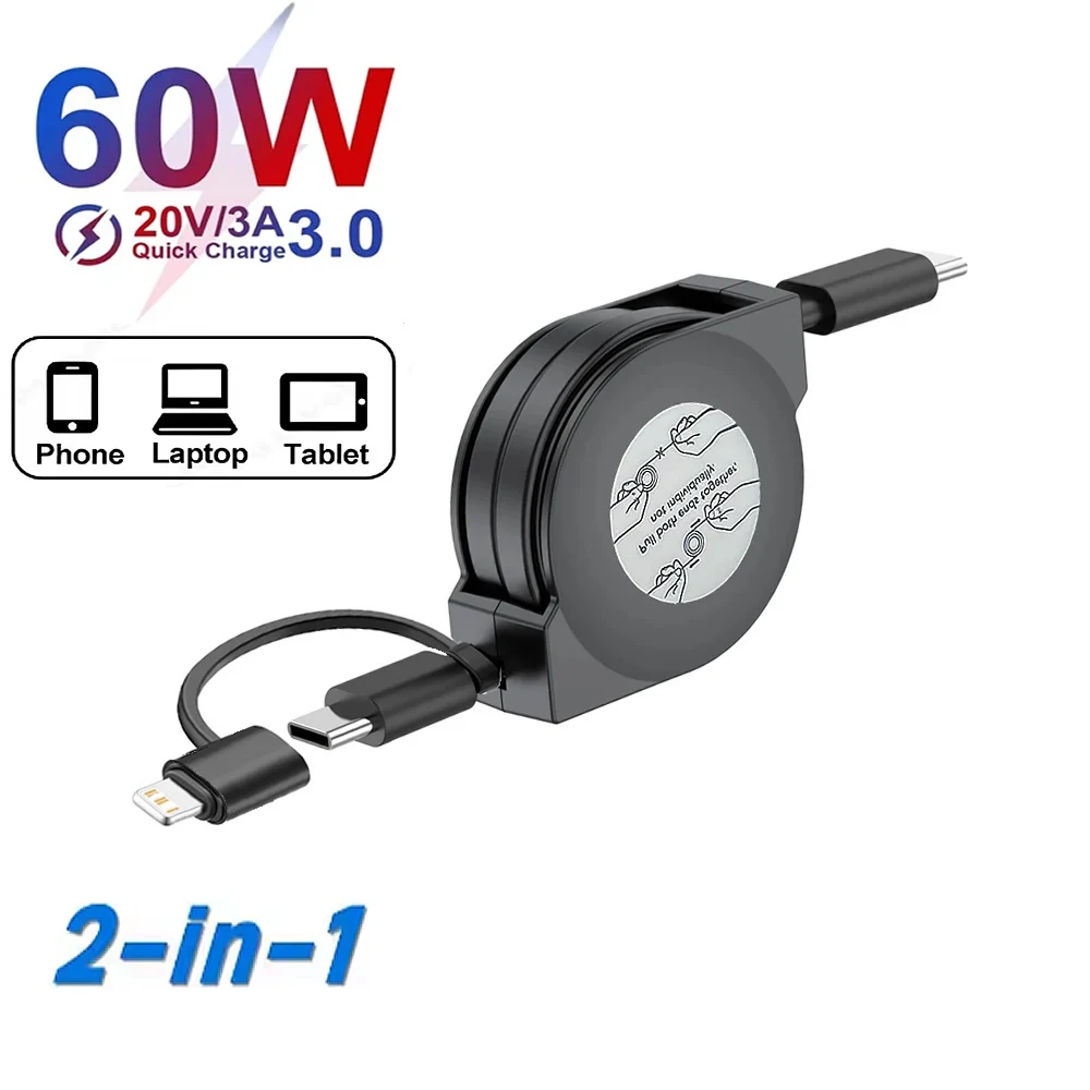 Retractable PD 60W USB C to USB C Data Cable, Notebook Fast Charging Cord Compatible with Type C Phone Switch Tablets and More $4.52