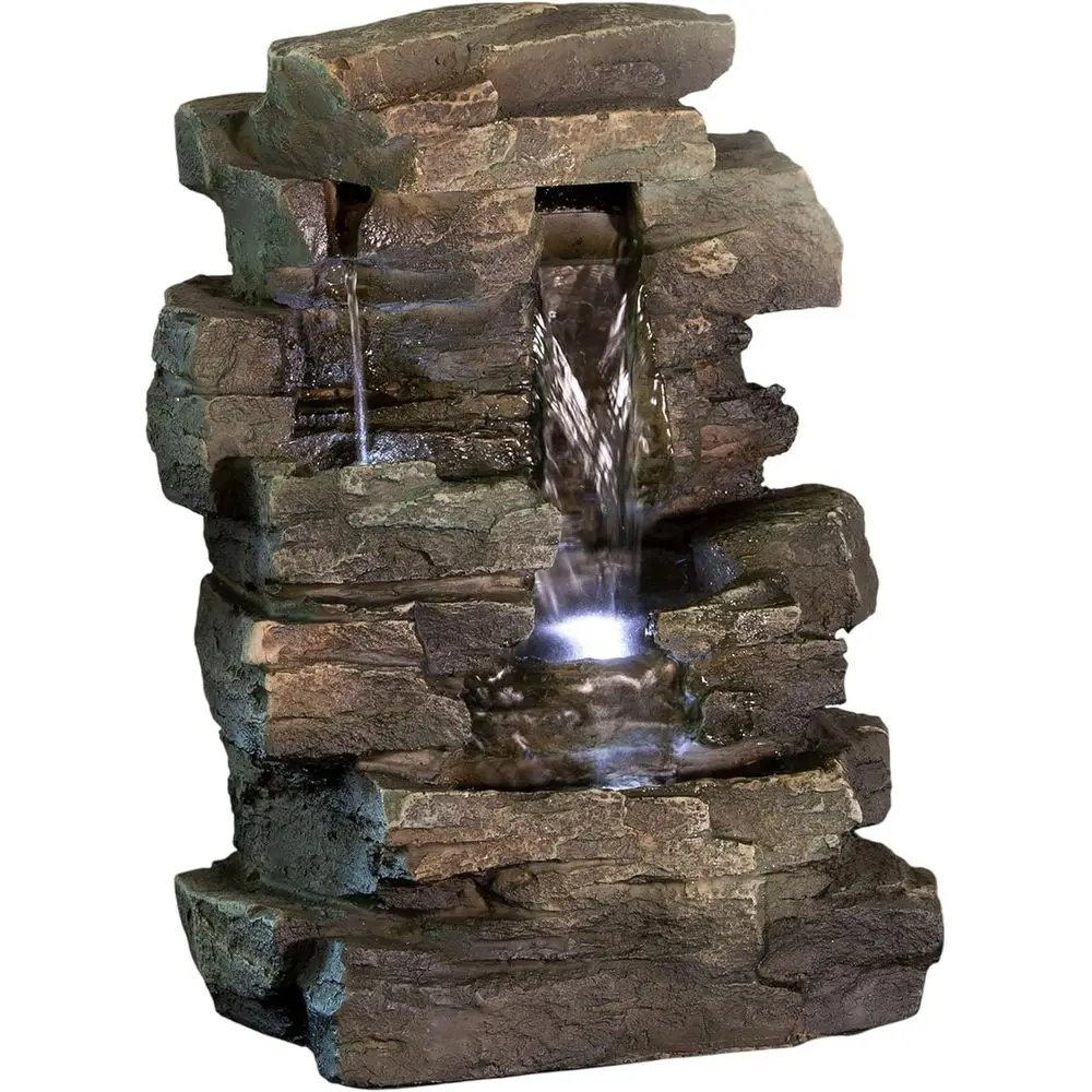 13" Tall Indoor Tabletop Water ountain, 4 Tier Cascading Water eature with LED Lights or Home, Oice, Living Room, or Zen Decor, $91.39