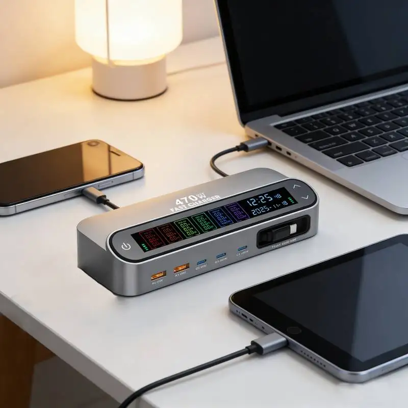 Multi-port Desktop Charging Station with Screen Display For Mobile Phone Tablet Laptop Fast Charger With Scalable Charging Cable $49.52