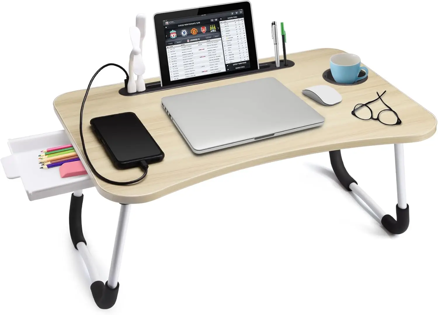 Foldable Laptop Bed Table with Storage Drawer, Tablet Slot & Cup Holder - Portable Desk for Couch Floor Use $41.04