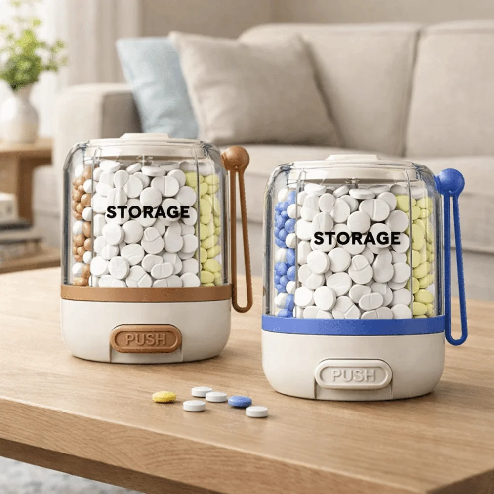 Press Type 4 Grids Pill Organizer Large Capacity Anti-Mixing Daily Pill Dispenser Round Plastic Drug Dispensing Bottle Tablets $3.09
