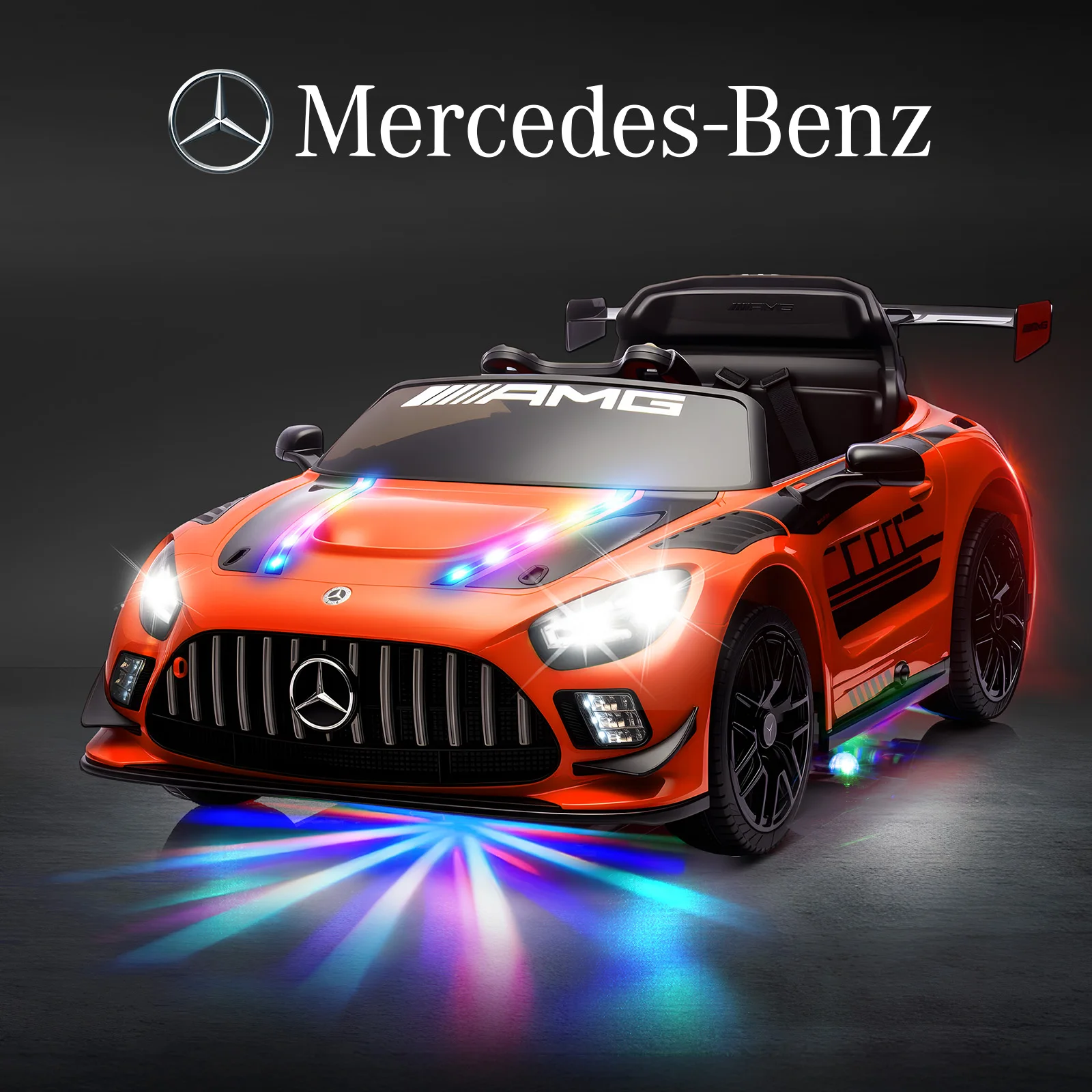 12V Electric Vehicles for 3-5y Kids Gifts ,Licensed Mercedes-Benz GT3 Kids Ride on Toy Car with LED Light Strips, -Orange $188.04