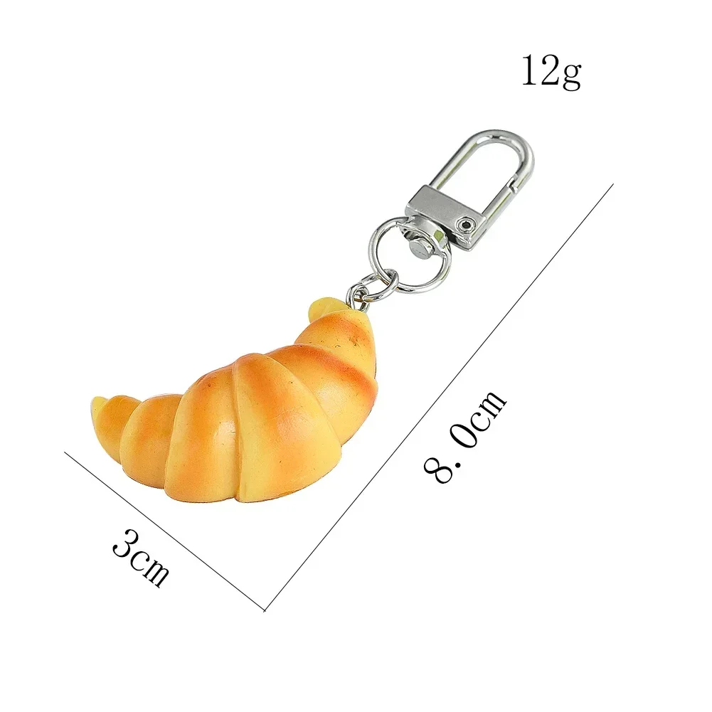 Artificial Food Toy Model Pendant Personality Creative Croissant Student Gift Pvc Alloy Keychain Ring Girl Cute Funny Jewelry $1.22