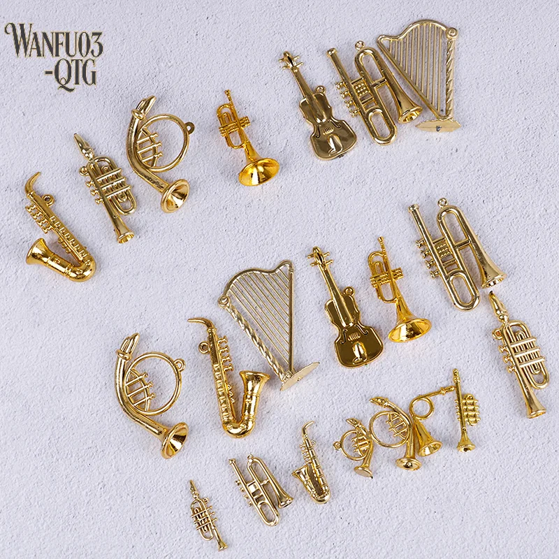 7pcs Mini Plastic Musical Instrument Gold Christmas Tree Hanging Xmas Decor For Friends Collecting Musical Cute Toy $4.96