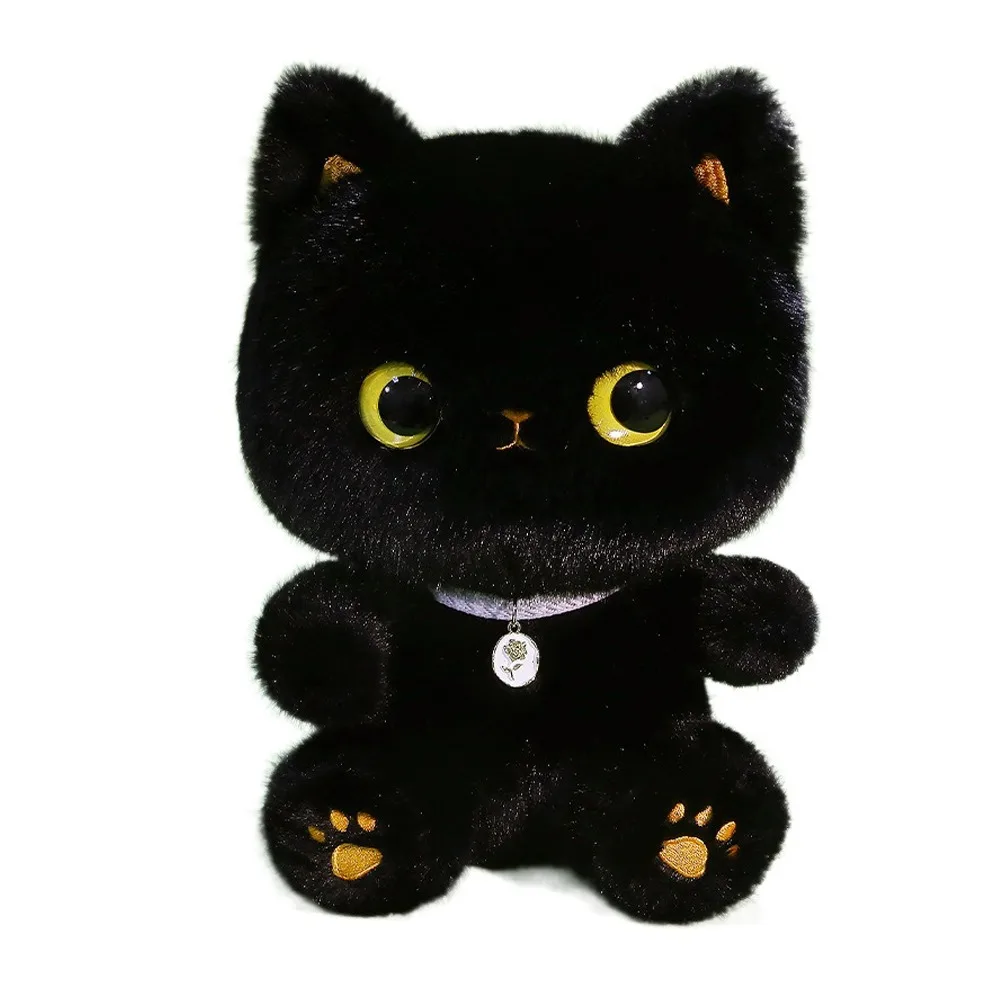 Creative Stuffed Animals Black Cat Plush Toy Kawaii Furry Siamese Cat Doll Comfort Fluffy Cat Table Doll Home Decor $6.74