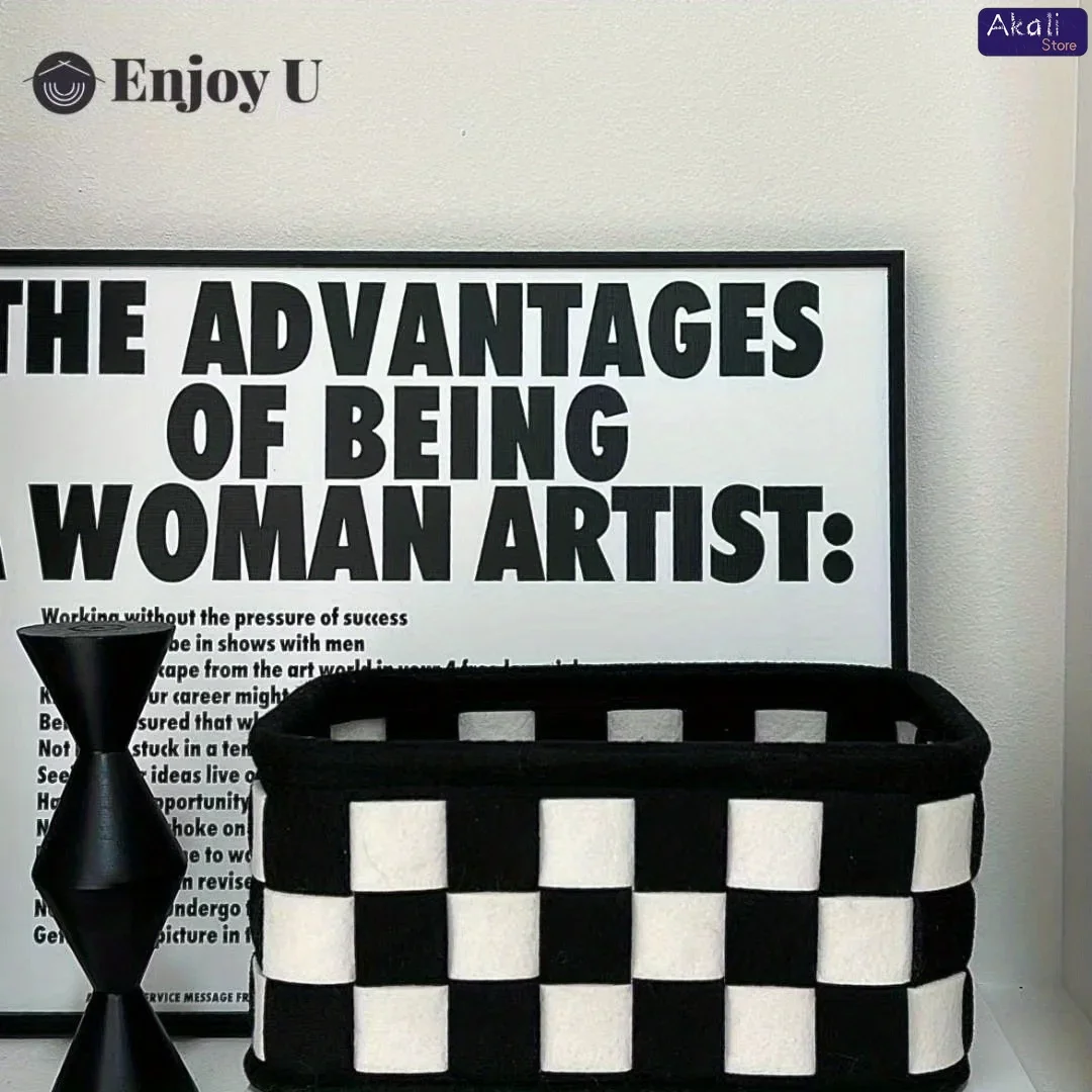 2026Black and White Checkered Storage Basket Desktop Cosmetics Storage Organizer Snack and Toy Storage Basket Home Decor $16.23