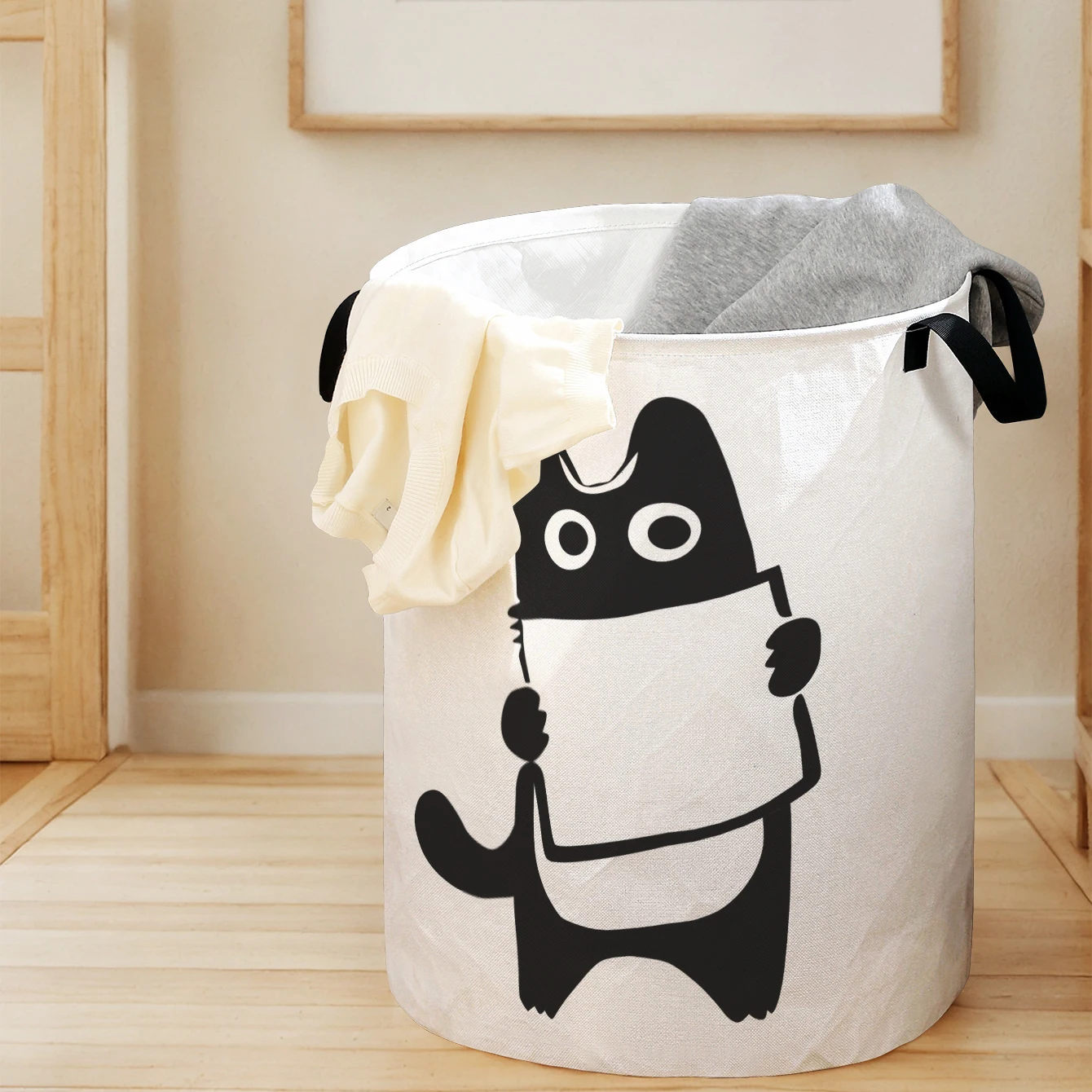 Funny Black Cat "Blank Sign" Print Foldable Large Capacity Storage Bucket, Children's Toy and Clothing Storage, Home Bathroom $8.95