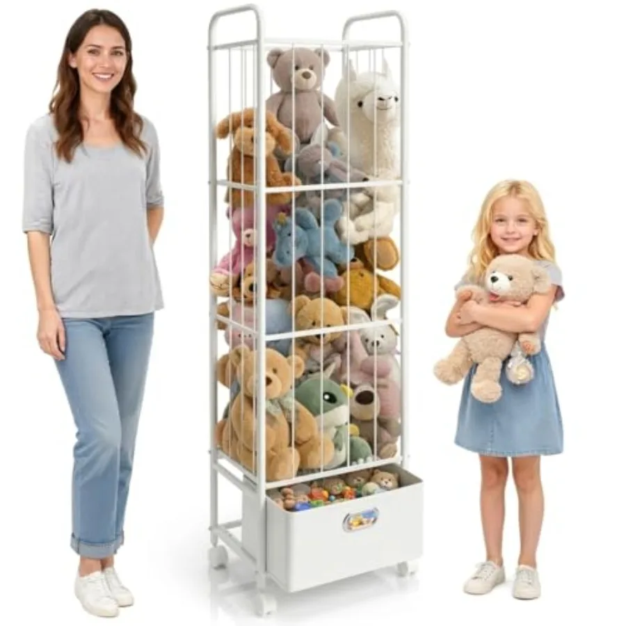Stuffed Animal Storage Metal Stuff Animals Zoo Holder with Fabric Drawer and Wheels Tall Vertical Plushies Toy Organizer Plush $65.89