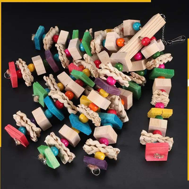 A92P Large Parrot Chewing Toy - Bird Parrot Blocks Knots Tearing Toy Bird Cage Bite Toy For African Grey Macaws Cockatoos $14.96