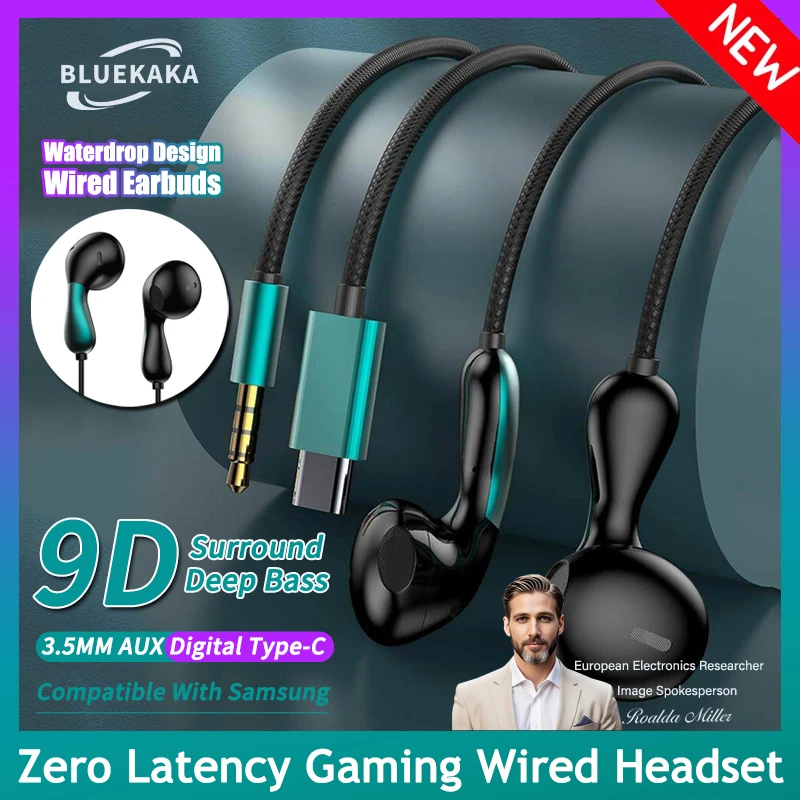 9D HIFI Heavy Bass Earphone 3.5MM AUX/Type-C Digital Chip 7.1 Surround Stereo Wired Headset With Mic Earbud For Samsung Android $5.47