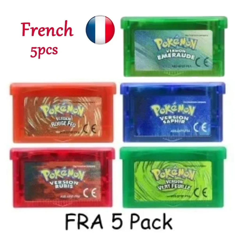 French 32 Bit GBA Video Game Cartridge Console Card Pokemon Series A Set Emerald FireRed LeafGreen Ruby Sapphire with Shiny Labe $7.42
