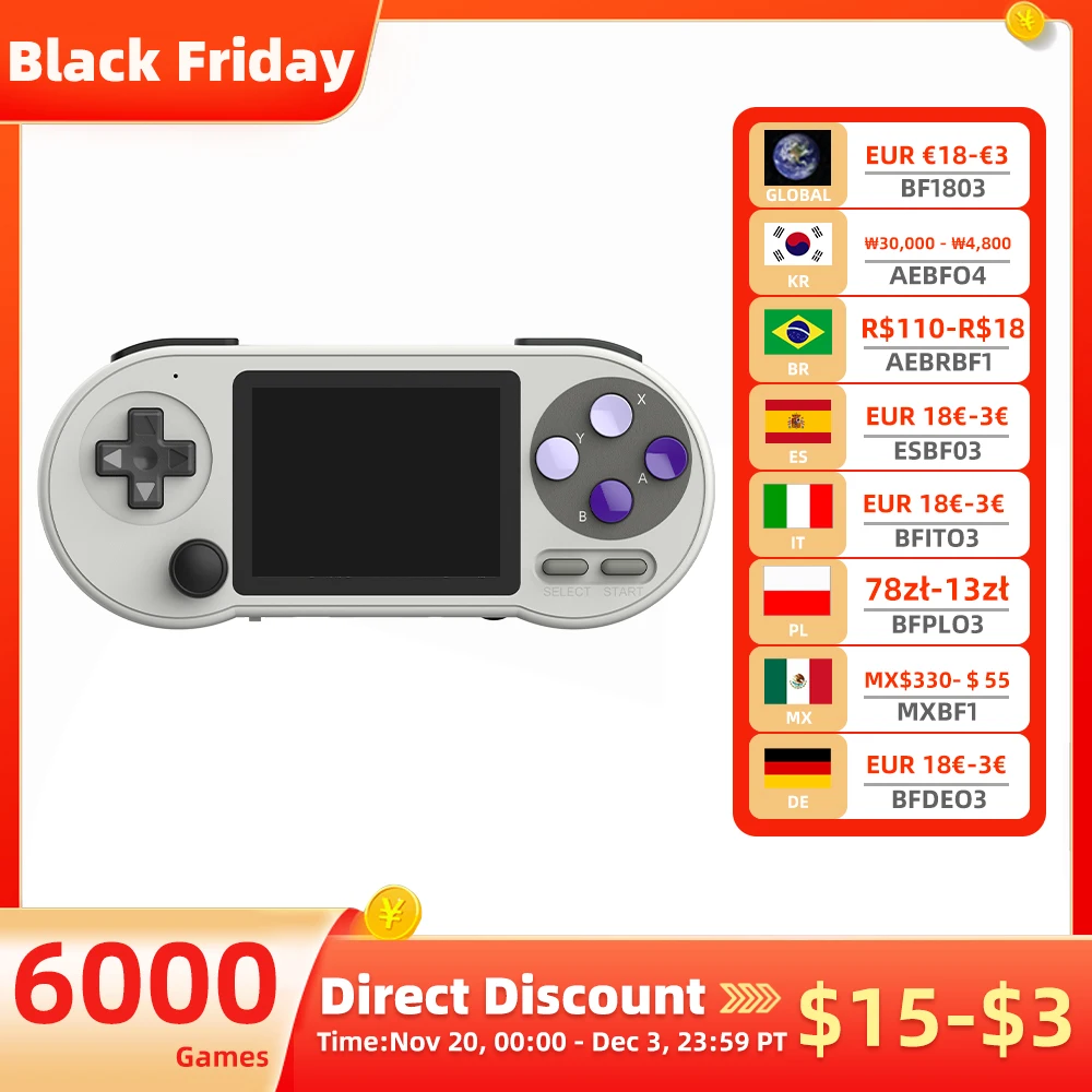 SF2000 Portable Handheld Game Console 3 Inch IPS Retro Video Game Player Built-in 6000 Games For SFC FC GBA Kid Gift AV Output $27.39