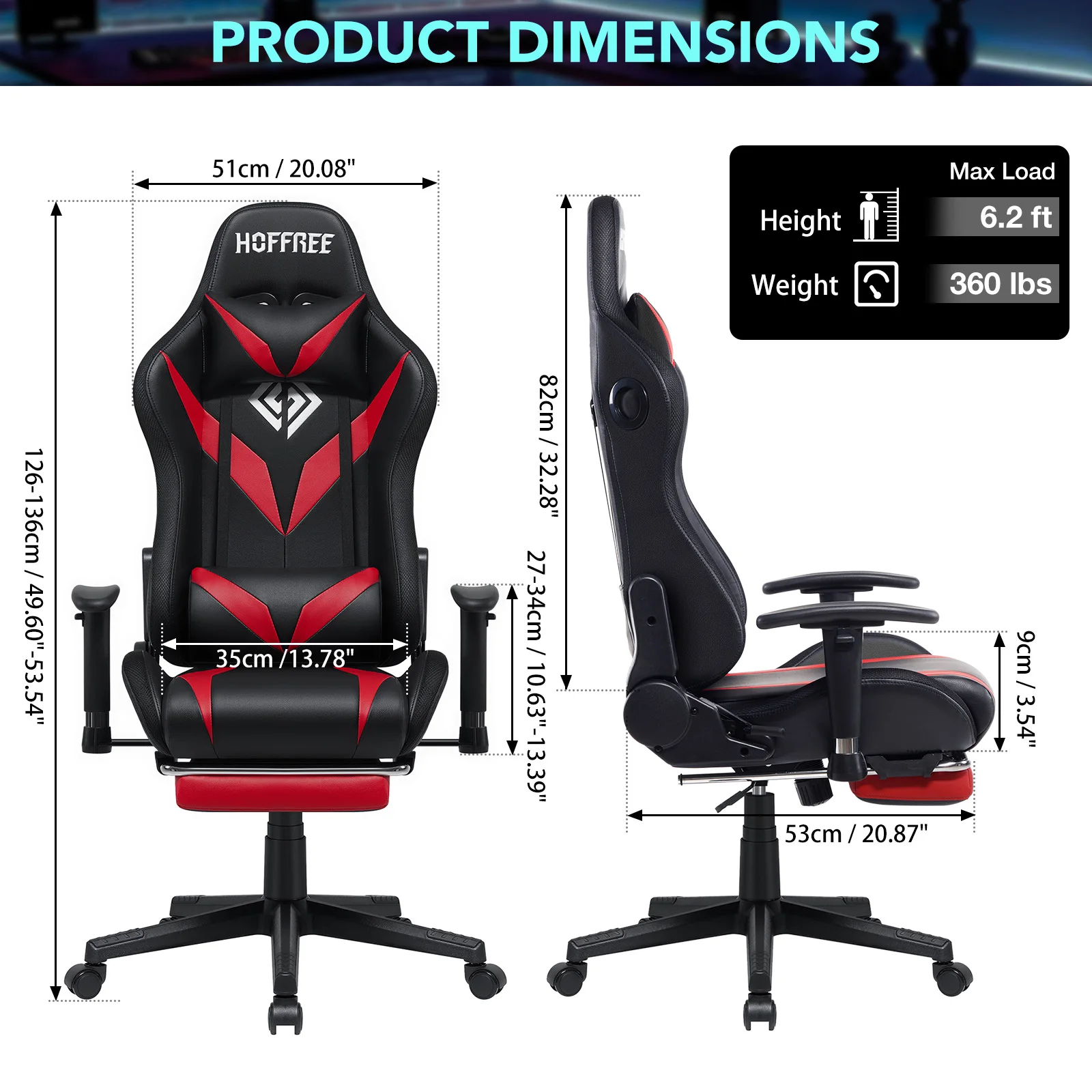 Gaming Chair with Footrest Racing Style Lumbar Support Massager Video Game Chair with Metal Legs High Back Reclining Gamer Chai $147.70