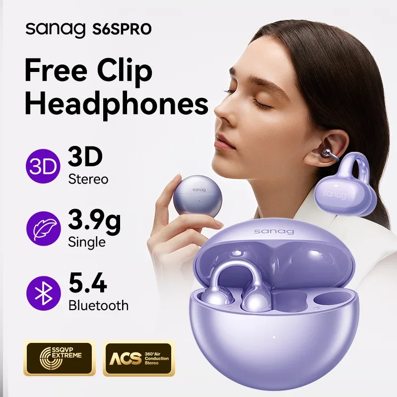 Sanag S6S Pro Open Ear Clip on Earphones 3D Stereo Sound Wireless Bluetooth Sport Chioce Headset Touch Control APP EQ Setting $39.87