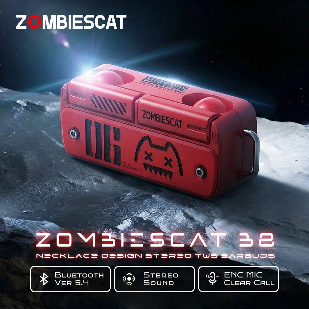 Zombies Cat B8 TWS Wireless Earbuds Necklace Design Bluetooth 5.4 Headphone ENC Call Noise Reduction Wireless Earphones with Mic $16.61